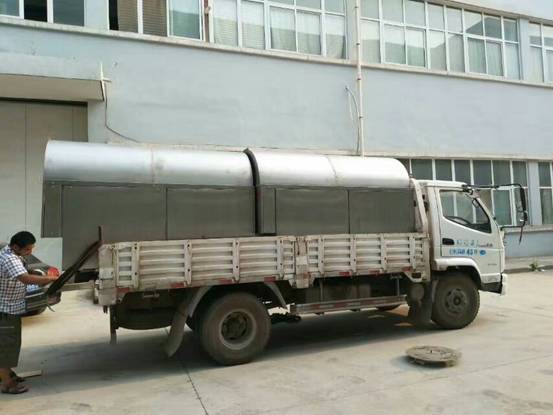 三門峽客戶訂制的兩臺(tái)土炒饃電磁炒貨機(jī)裝車發(fā)貨