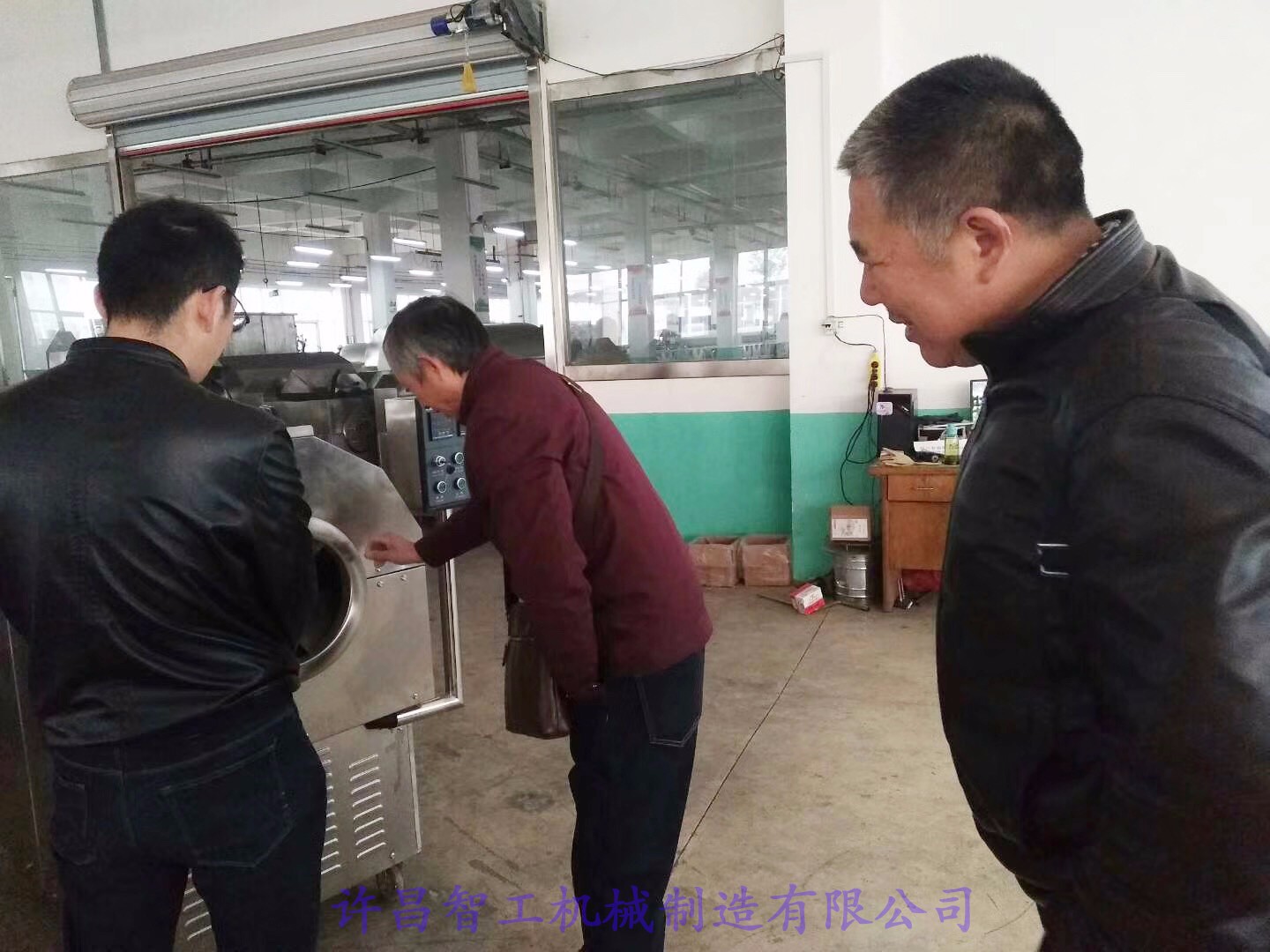 許昌智工多功能炒貨機吸引各行業(yè)老板來廠考察試機