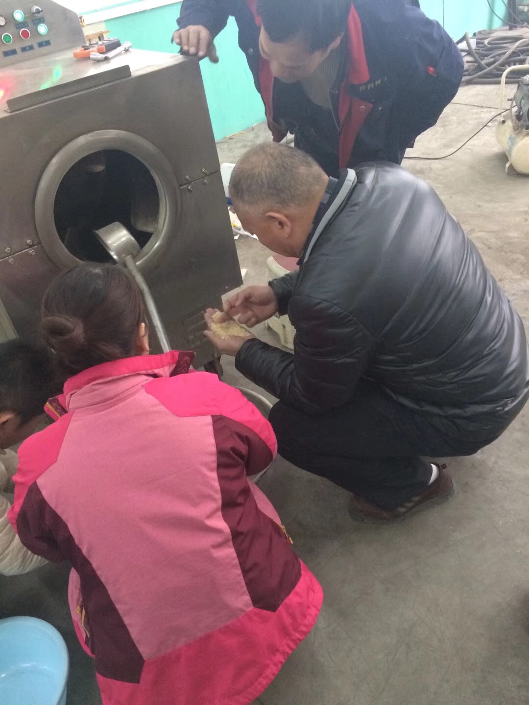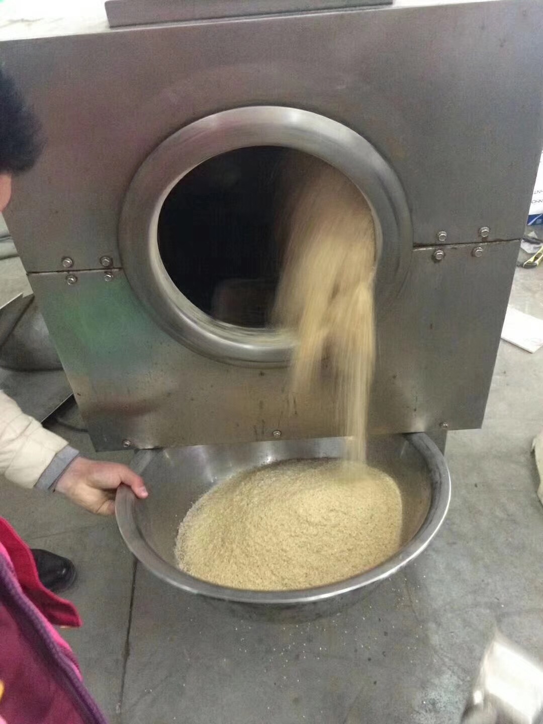 客戶來公司試機(jī)電磁炒貨機(jī)炒制小麥皮,炒制效果太好了!