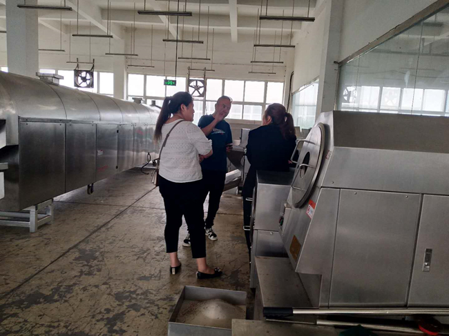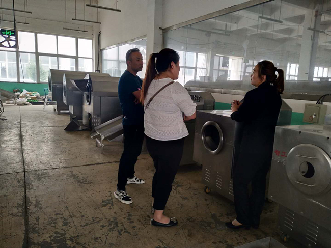 歡迎山東客戶來(lái)許昌智工考察電磁炒板栗機(jī),期待與您合作