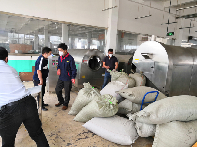 5月13日,鄭州客戶馬總一行三人自帶辣椒、花椒、茴香、桂皮等復(fù)合型大料來許昌智工試機(jī)電磁炒貨機(jī)炒制!炒制過程主要是起到去除水分的作用,方便下一步客戶需要的磨粉工藝!經(jīng)過我們工作人員的共同參與歷時(shí)三個(gè)小時(shí)的炒制,客戶帶過來的900斤調(diào)味料全部炒制完成,客戶對(duì)炒制效果非常的滿意,并且對(duì)我們的設(shè)備也是給予了極大的肯定!