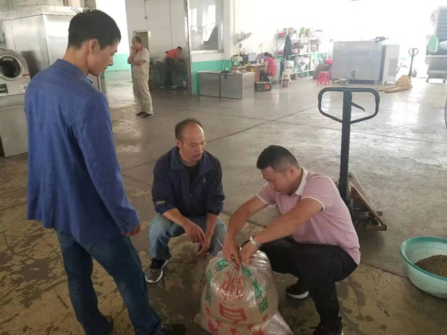 9月23日鄭州客戶廖總一行兩人開車來廠考察試機(jī)炒制香酥豌豆!