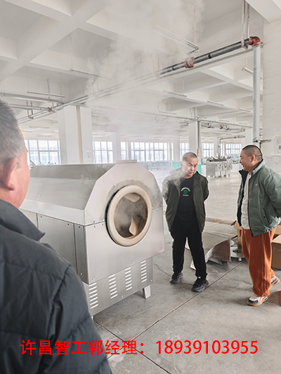 大年初六客戶來廠試機100斤炒鍋炒制芝麻