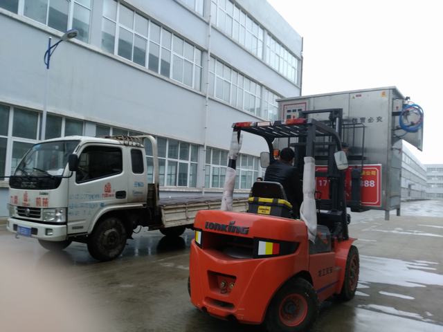 風(fēng)雨無阻,發(fā)往山東棗莊的自動(dòng)脫毛機(jī)裝車實(shí)拍圖片