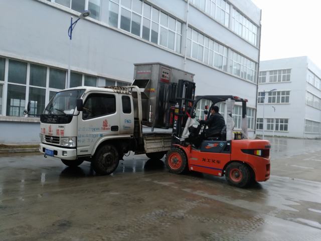 風(fēng)雨無(wú)阻,發(fā)往山東棗莊的自動(dòng)脫毛機(jī)裝車實(shí)拍圖片