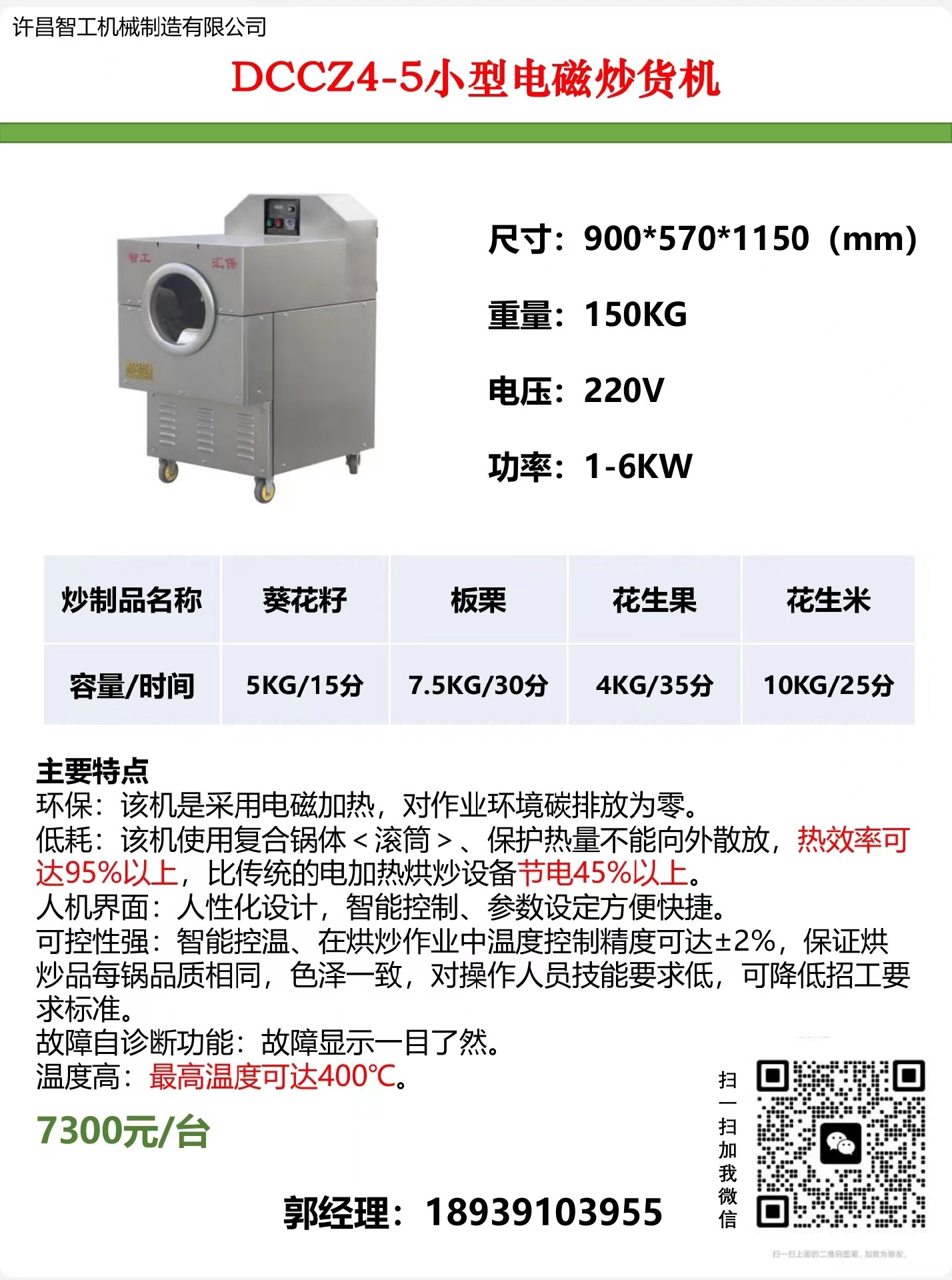 河南【許昌智工】機械制造有限公司,專業(yè):研發(fā)、生產(chǎn)、銷售:智能型、多功能、電磁炒貨機,純不銹鋼制作,耐鹽、耐酸、耐腐蝕,永不生銹,干凈衛(wèi)生耐使用。
