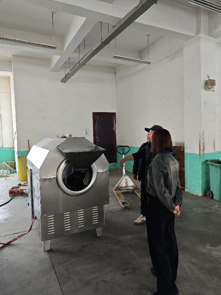 河南周口小磨香油個(gè)體戶(hù)來(lái)廠試機(jī)100斤芝麻炒鍋